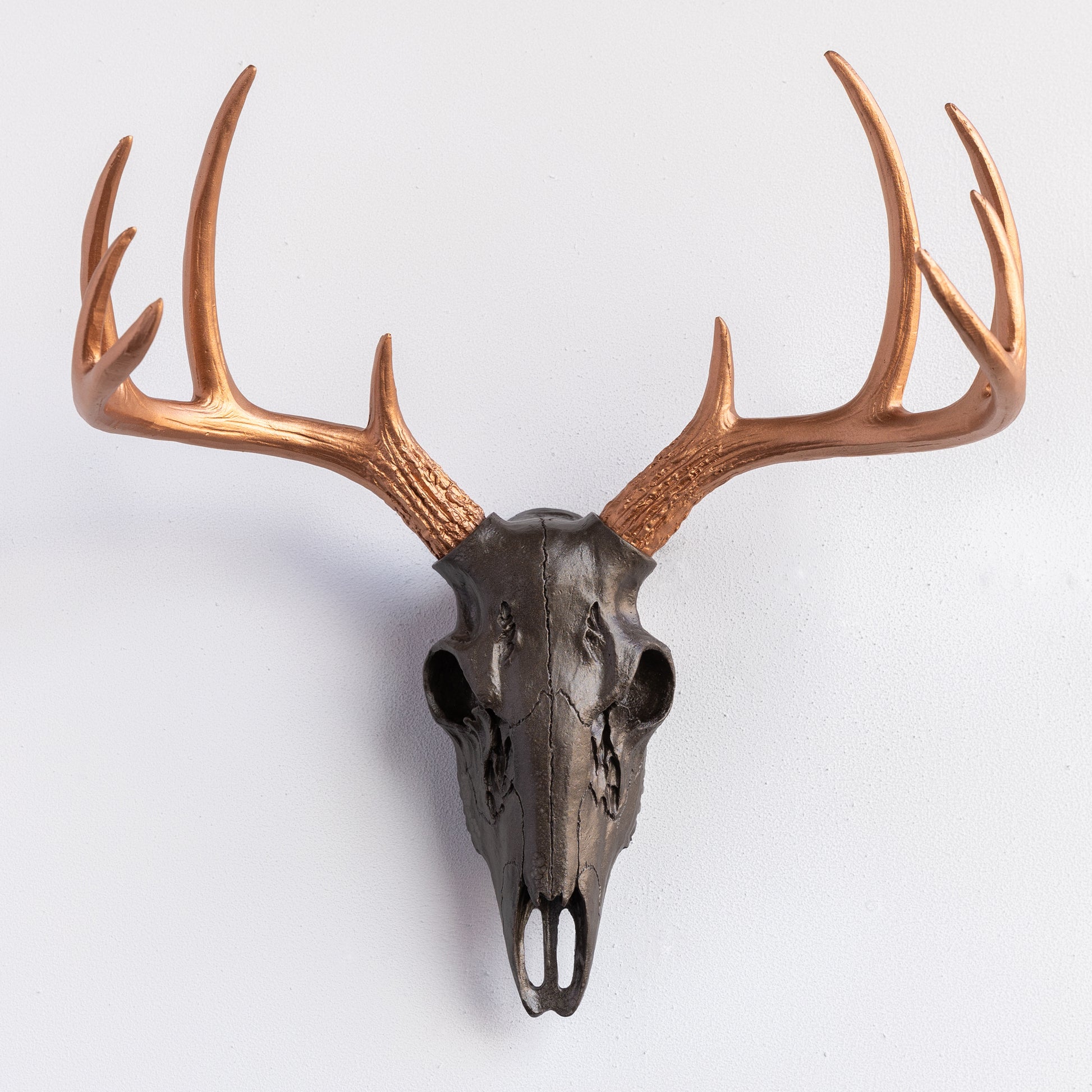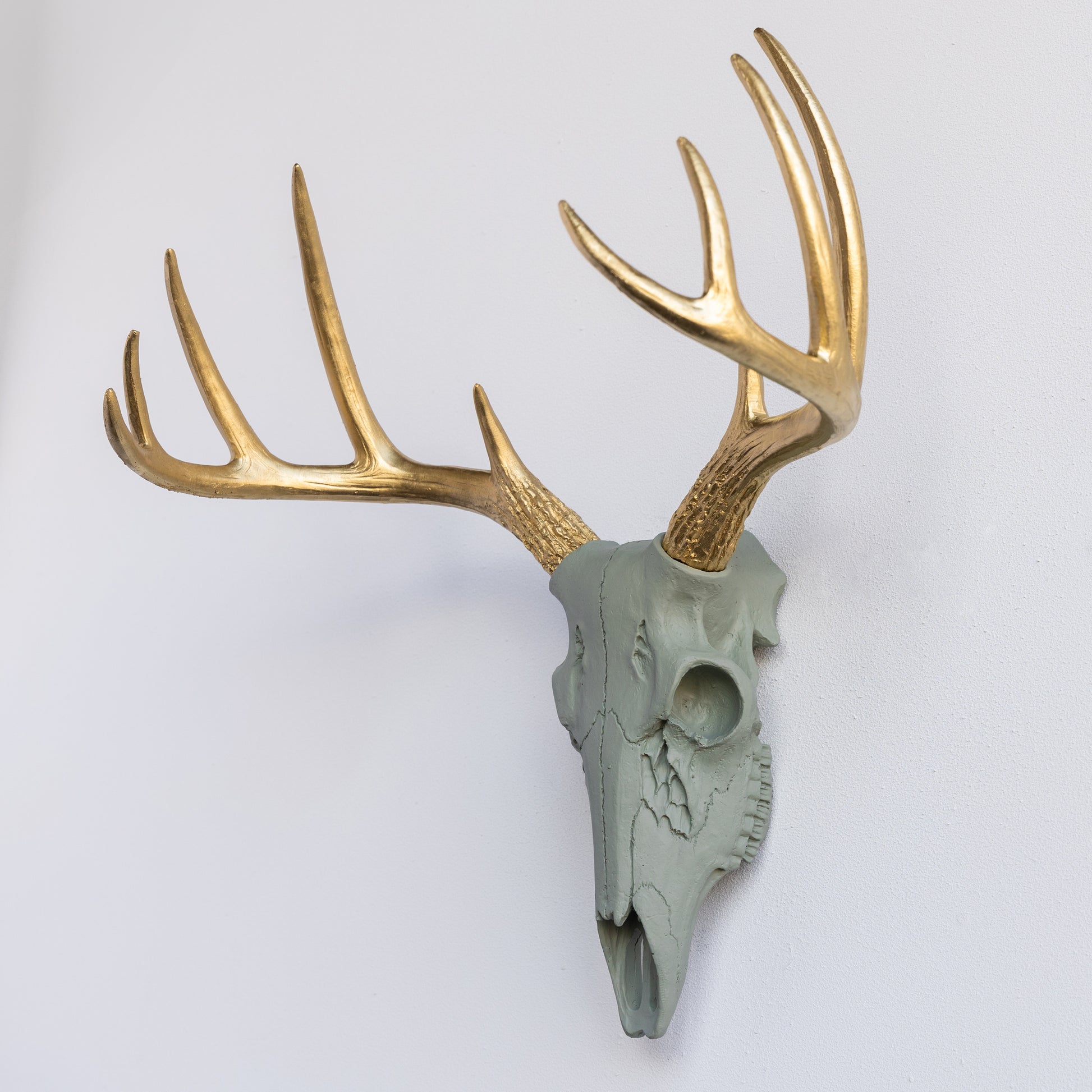 Crafted out of resin, our faux mini deer skull is bursting with all of the details of the real thing, but you can rest easy knowing that no real deer were harmed to make this fake mini deer skull. Yes, like all of our pieces, our mini deer skull is 100% animal friendly and cruelty-free. You’ll be amazed at the details in the fake skull, and the antlers will wow you with the realistic features. Our mini deer skull is an eye-popping addition to baby nurseries and smaller spaces like bathrooms, entry ways, kitchens, breakfast nooks, mudrooms and hallways.